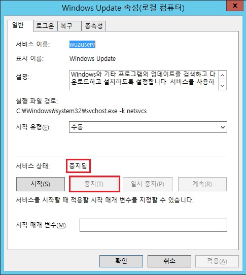 : 서비스 윈도우 업데이트 중지 상태에서 삭제해야 한다고 함